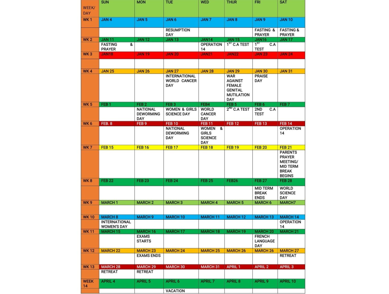 SCHOOL CALENDAR 2ND TERM 2025/2026 SESSION